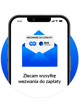 Ta opcja jest dostępna w zakładce Moi kontrahenci > Zarządzanie długami kontrahentów. Aby zlecić wysyłkę, najpierw dodaj dane dłużnika oraz informacje o zadłużeniu. Na tej podstawie przygotujemy wezwanie do zapłaty. Sprawdź uważnie dane dotyczące dłużnika i długu – jeśli znajdziesz jakieś błędy, popraw je przed zleceniem wysyłki. Sprawdzone przez Ciebie wezwanie przekażemy do BIG InfoMonitor do wysłania listem poleconym. Na tym etapie nie ma już możliwości edytowania danych na wezwaniu ani anulowania wysyłki. Gdy BIG InfoMonitor wyśle w Twoim imieniu wezwanie do zapłaty, w koncie BIK znajdziesz informację o dacie wysyłki oraz sprawdzisz, za ile dni możesz wpisać dłużnika do Rejestru BIG InfoMonitor.