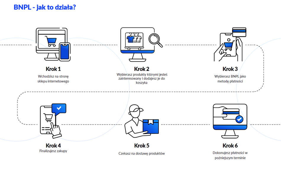 BNPL to usługa stworzona niemal dla każdego, ale są pewne wymagania, które musisz spełnić, aby z niej skorzystać. Przede wszystkim mechanizm BNPL w Polsce jest przeznaczony tylko dla konsumentów, czyli osób fizycznych, które dokonują zakupu niezwiązanego bezpośrednio z ich działalnością gospodarczą lub zawodową. Ponadto płatność odroczona jest dostępna dla osób, które ukończyły 18 lat i mają pełną zdolność do czynności prawnych. Kredytodawca (czyli w tym przypadku firma oferująca zakupy z odroczoną płatnością) musi też zweryfikować zdolność kredytową oraz historię kredytową konsumenta przed udzieleniem zgody na sfinansowanie zakupu lub przyznaniem limitu kredytowego w ramach BNPL. W tym celu posługuje się najczęściej danymi przekazanymi od kupującego, a także rejestrami, takimi jak BIK. Szczegóły dotyczące procesu przyznawania finansowania udostępnia kredytodawca